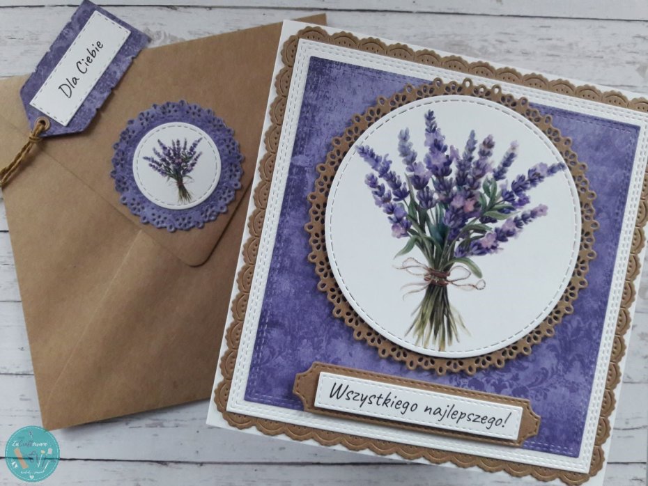 Tagi: #kartka dla mamy z lawendą, #kartka imieninowa z lawendą, #kartka na urodziny z lawendą, #kartka z bukietem lawendy