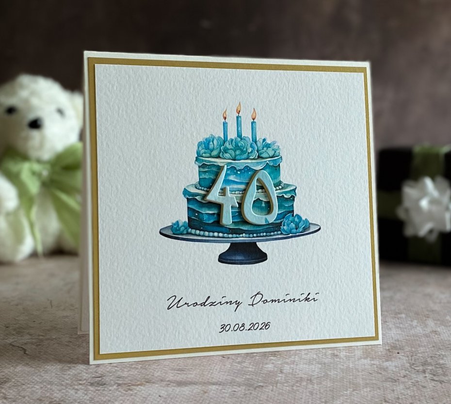 Tagi: #40 urodziny, #elegancka kartka urodzinowa, #kartka na 40 urodziny, #kartka okolicznościowa