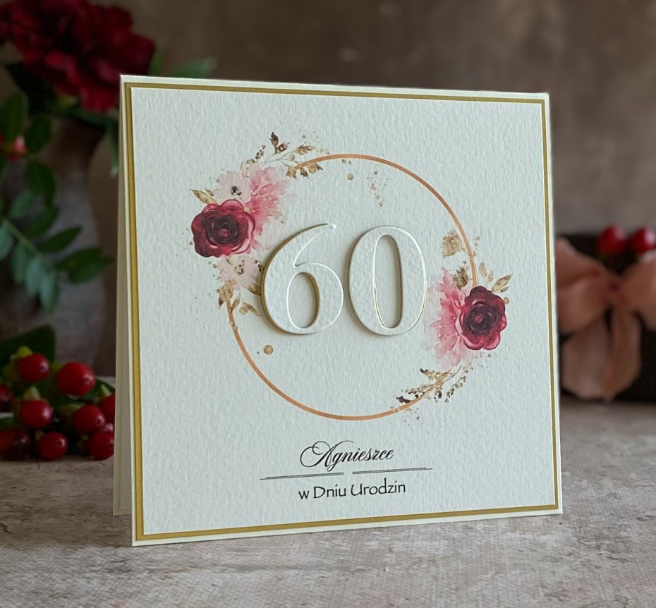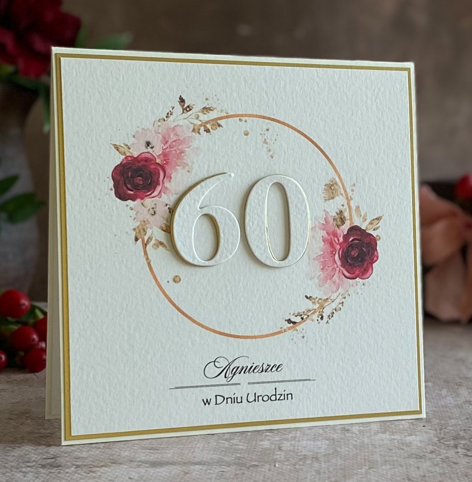 Tagi: #60 urodziny, #elegancka kartka urodzinowa, #kartka na 60 urodziny, #kartka okolicznościowa