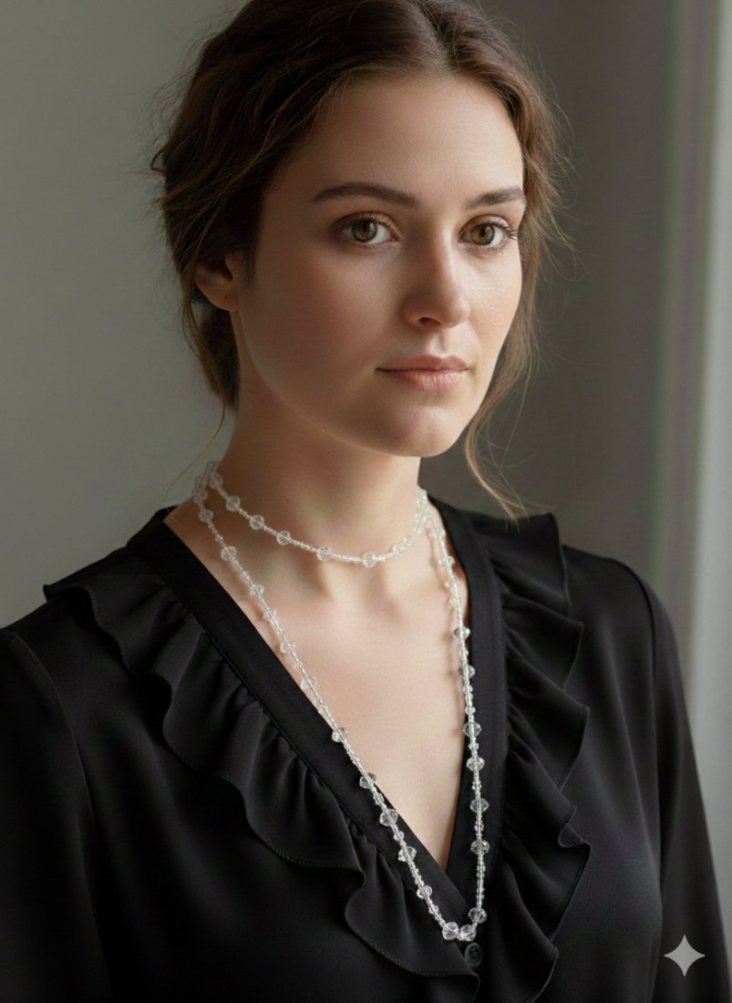 Doskonale prezentuje się zarówno na tle klasycznej bieli, jak i głębokiej czerni. Idealny do romantycznych sukienek z falbanami, eleganckich koszul czy wieczorowych kreacji.