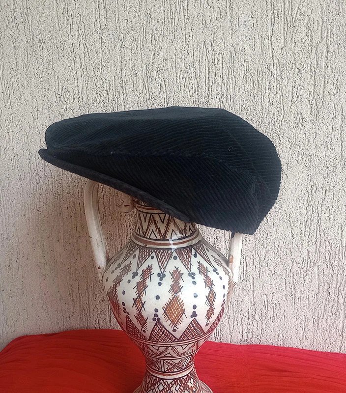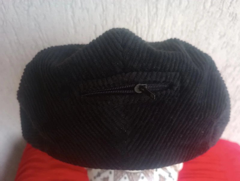 Czarny kaszkiet true vintage (wyprodukowany w Polsce). Można ją nosić na dwa sposoby: z zapiętym i odpiętym daszkiem. Z tyłu kaszkiet ma kieszonkę zapinaną na suwak. Kaszkiet można zobaczyć także tutaj: https://www.vinted.pl/items/5350400866-kaszkiet-sukienka-spodnie-kardigan-plaszcz-spodnica-buty-torba-kurtka-ponczo-peleryna-kamizelka-szal