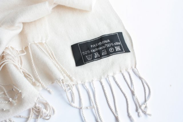 Piękny, klasyczny szal PASHMINA w odcieniu ecru, wykonany z luksusowej mieszanki kaszmiru i jedwabiu. Materiał jest bardzo miękki, miły w dotyku.
