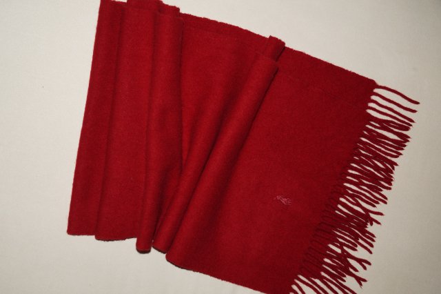 Szalik wykonany prawdopodobnie z kaszmiru lub mieszanki kaszmiru z wełną w kolorze czerwieni wpadającej w bordo ( ciemniejszy niż na zdjęciu), ma znaczek gracza polo, mięsisty, miękki i nie gryzący, został przywieziony ze Szkocji