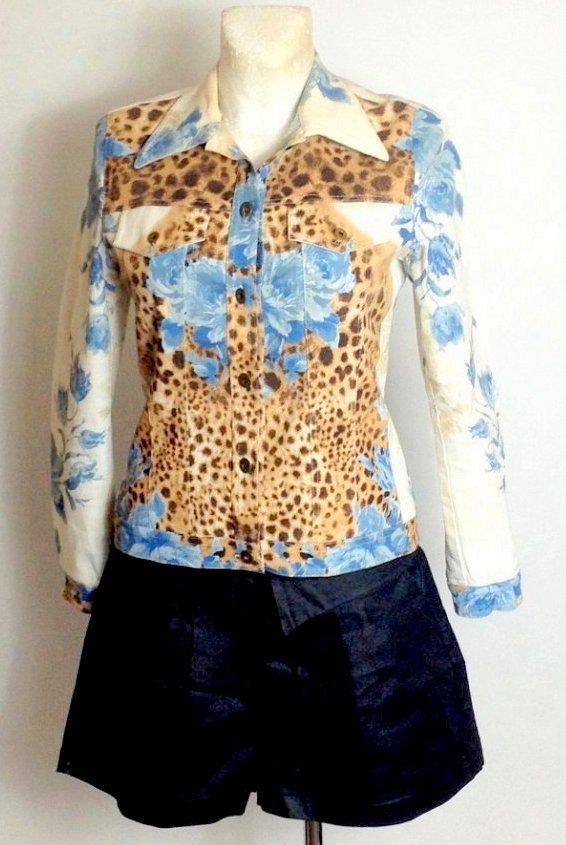 Oldskulowa jeansowa katana wzorzysta min w motyw tygrysi, kwiaty. Jest niesamowita.Wzory są całej długości, szerokości katany w tym również na kołnierzu i po bokach na rękawie, tak więc nie sposób na niej nie zwrócić uwagi. Zapinana jest na metalowe guzki, na piersi posiada dwie kieszonki.
