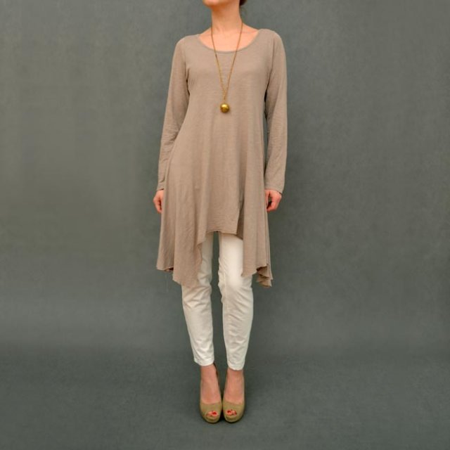 Tunika od GINY TRICOT. W kolorze cappuccino. Ma z tyłu guziczki, które z reguły są z przodu. Ma niesamowitą formę - nieokiełznaną, nieregularną. Dół to krótszy to dłuższy z nieregularnym wykończeniem. Świetnie sprawdza się z paskiem jak i solo. Kolor może się troszkę różnić.