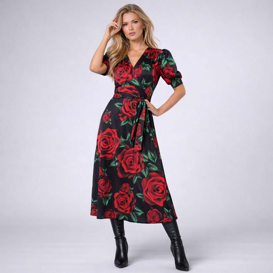 Sukienka kopertowa zaprojektowana i uszyta w pracowni NIKONOROV