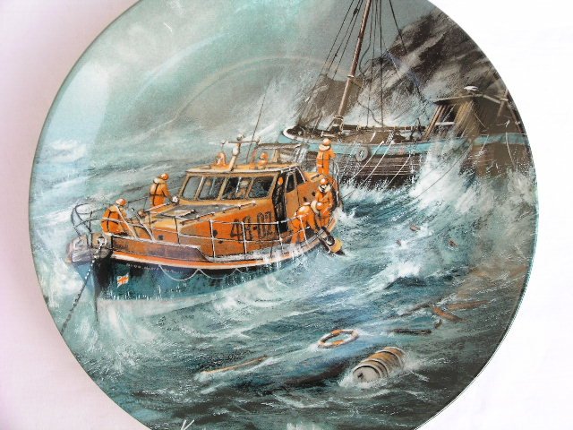 Unikatowy na rynku polskim kolekcjonerski, porcelanowy talerz z Limitowanej serii produkowanej tylko przez 21 dni. Talerz ze swoim indywidualnym numerem, sygnowany jakością Minerva Ware Crown Staffordshire England z serii HEROES OF THE SEA; drugi talerz z serii Off the Slipway malowany przez Kavina Platta. Rarytas. 20 x 2 cm.