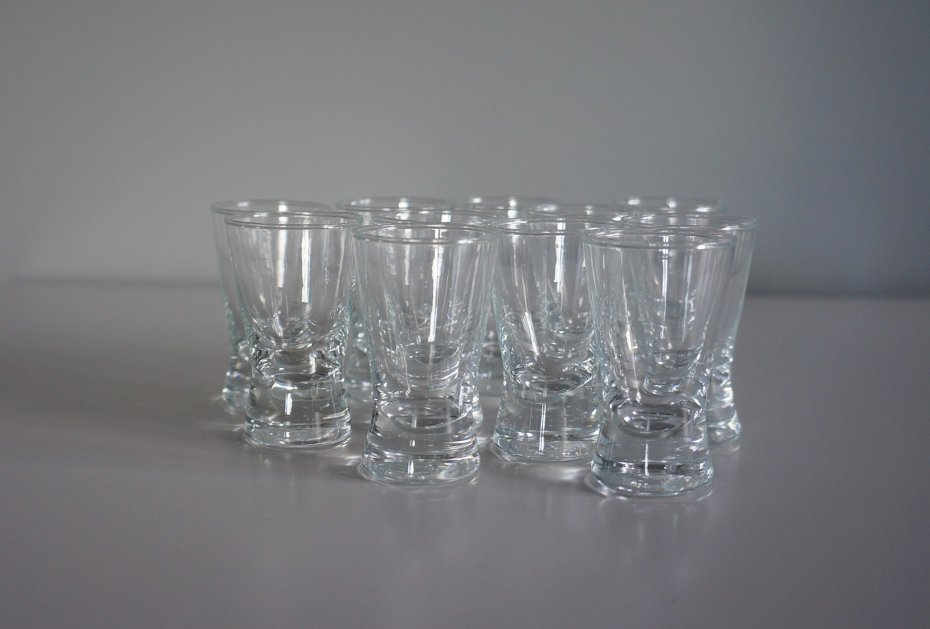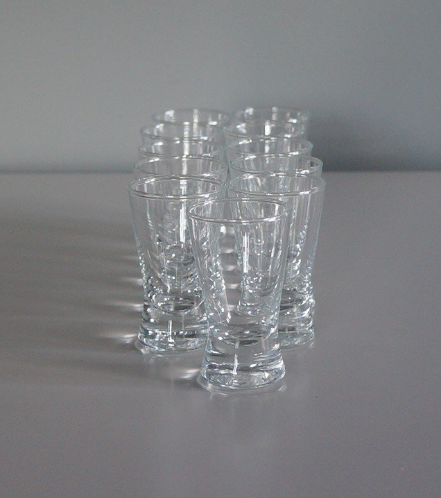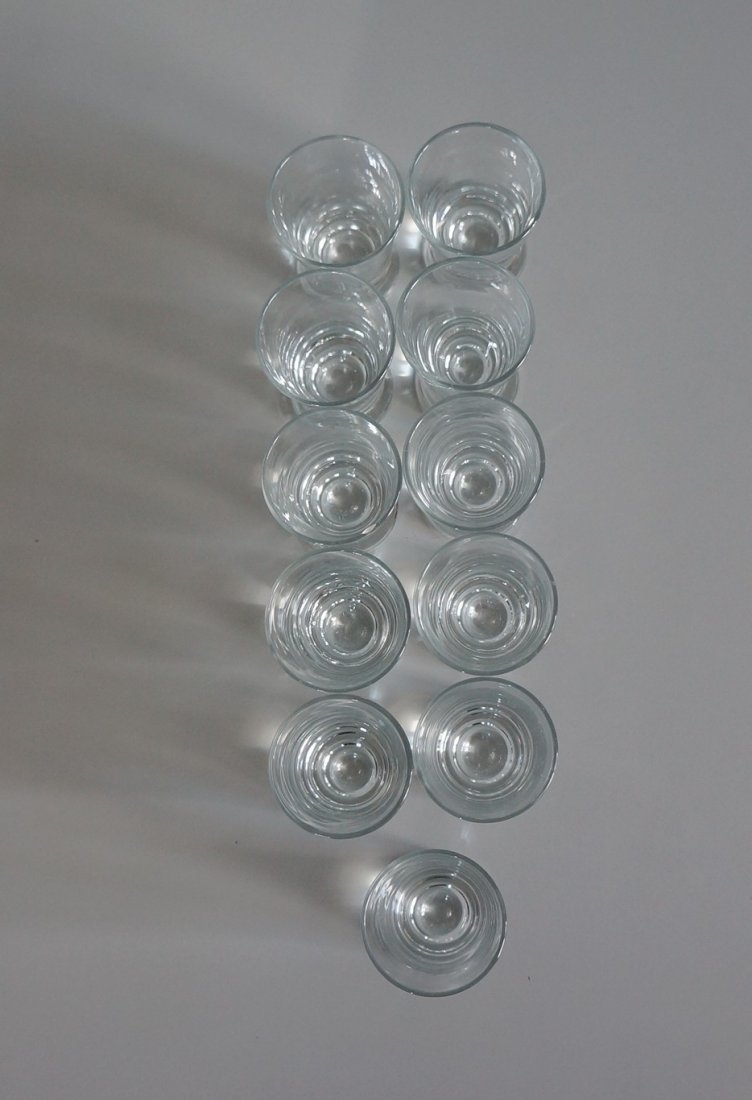 Kieliszki o pojemności 25 ml z czystego szkła. Sztuk 11.