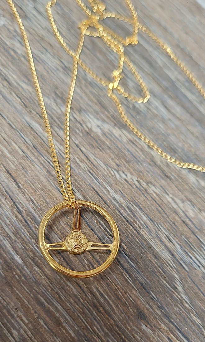 Naszyjnik wykonany ze srebra próby 925 pokrytego 24K złotem.