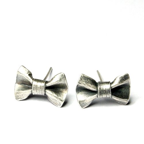 Srebrne kokardki (11x16mm) umieszczone na sztyftach. Wykonane ze srebra próby 925, oksydowane. Baranki silikonowe. Polecam :)