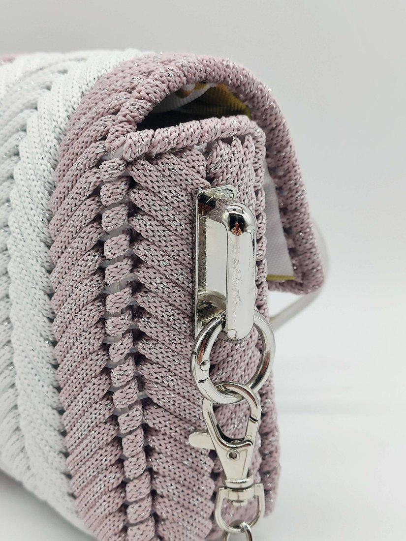 Nasza różowo-biała torebka z elegancką srebrną nitką (glitter) to idealny wybór dla kobiet ceniących oryginalne torebki i rękodzieło.