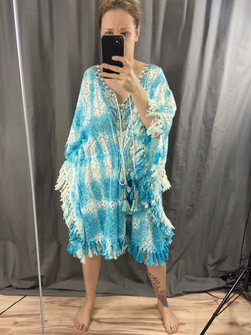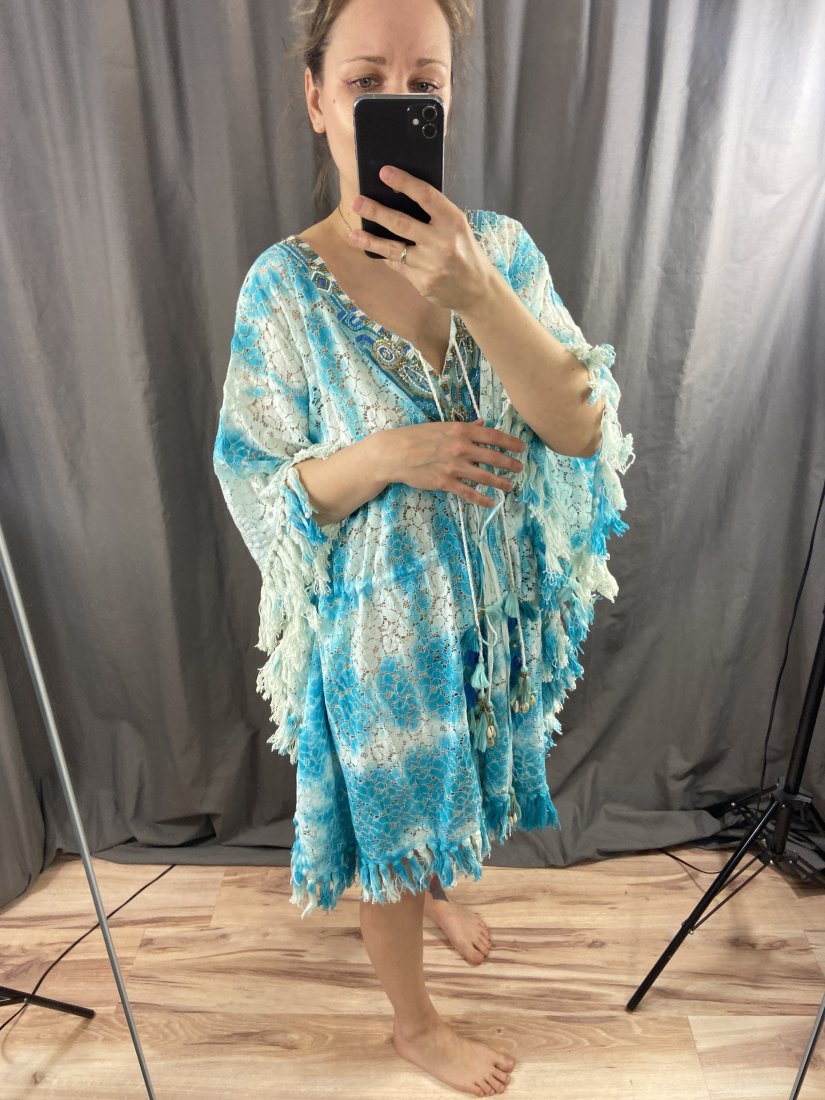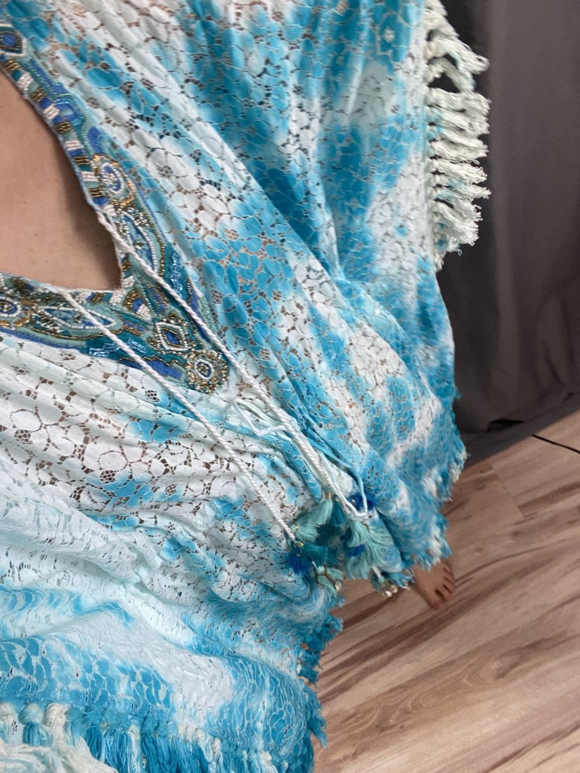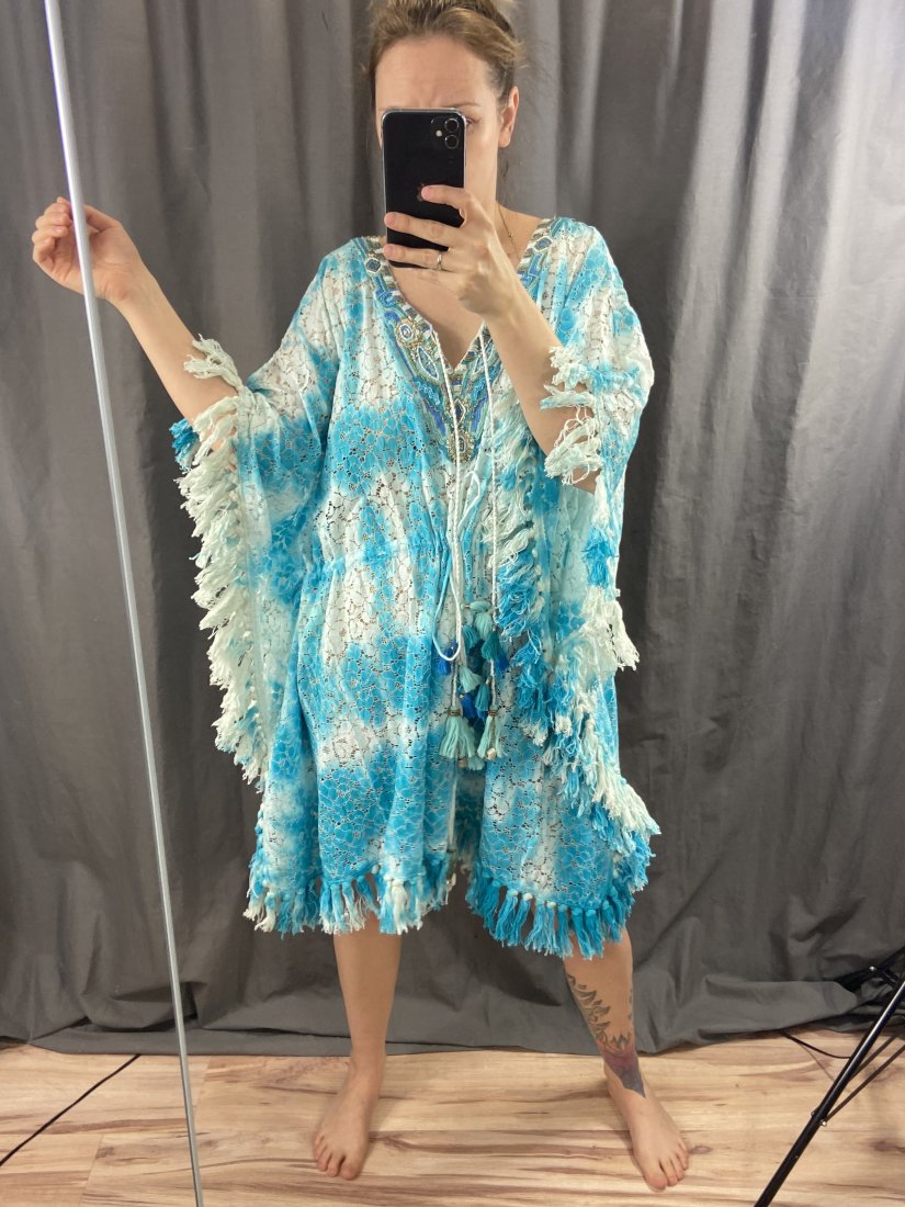 Kitch&Pop. Bawełniana galabija, idealna na plażę. Wykończona koralikami i naturalnymi muszelkami. Cena nowej ponad 200$: