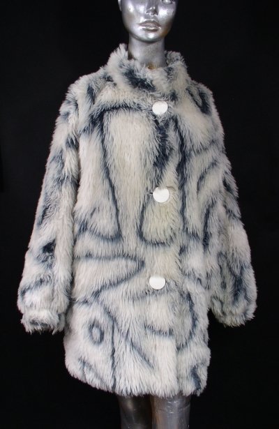 Futerko z tworzywa sztucznego.Rozmiar 40.Podszewka biała,syntetyk.Z przodu dwie pionowe kieszenie.Zapinane z przodu na trzy duże guziki.Rękaw długi,zakończony mankietem.W koło szyi stójka.Stan ogólny dobry+.Długość 83 cm.Pod pachami 128 cm.obniżone.