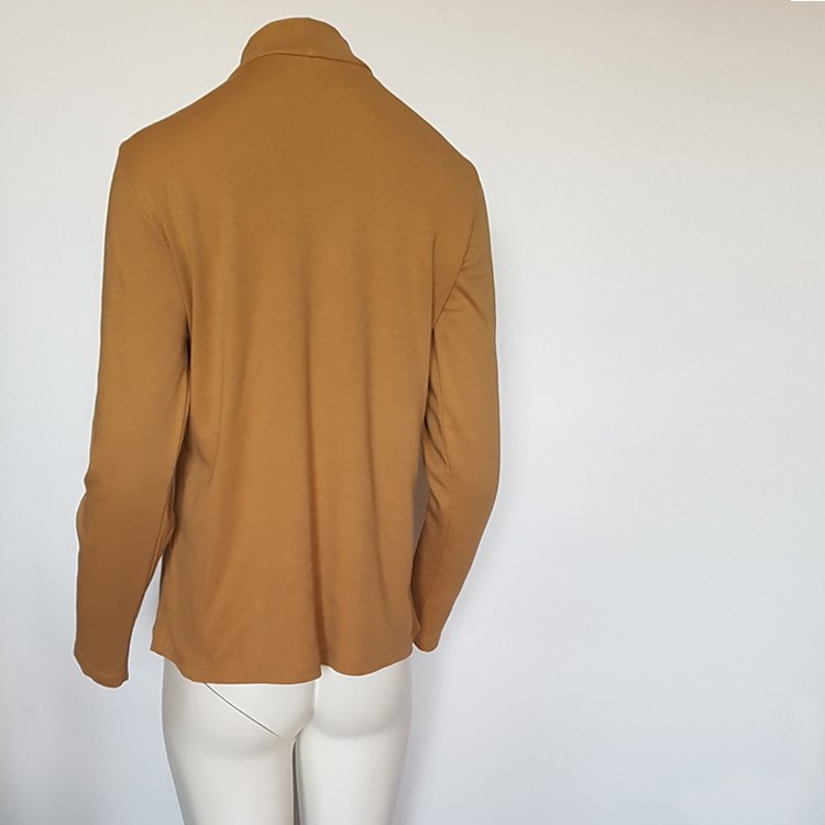 Klasyczny półgolf z długim rękawem w kolorze ciepłego karmelowego beżu. Wykonany z naturalnej dzianiny bawełnianej. Prosty fason, przyda się do wielu stylizacji: codziennych, smart casual, do pracy czy na chłodniejsze dni. Świetny, klasyczny i ponadczasowy model, który nigdy nie wychodzi z mody.