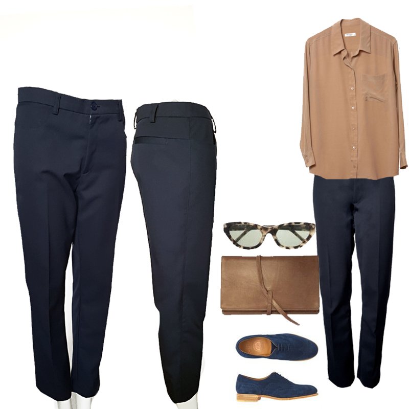 Klasyczne spodnie z kantem, cygaretki o lekko zwężanych nogawkach. Zapinane z przodu na zamek i guzik, w pasie szlufki, 2 kieszenie z przodu, z tyłu listewki sugerujące kieszenie. Spodnie szyte na miarę, z tkaniny wełnianej, z dodatkiem poliestru. Spodnie o kroju unisex, dobrze leżą zarówno na sylwetce męskiej jak i damskiej. Sprawdzą się w zestawach eleganckich i na luzie.