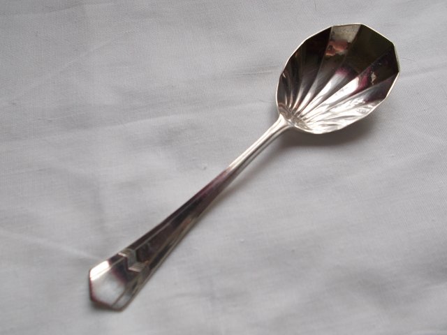 Stara łyżeczka do cukru,konfitur,dżemów - szlachetny plater typu E.P.N.S. (elektro plated nikiel silver). Prosta elegancja zdobienia. 13,5 x 3,8 cm. Ślady oczywistego polerowania. Stan zachowania dobry.