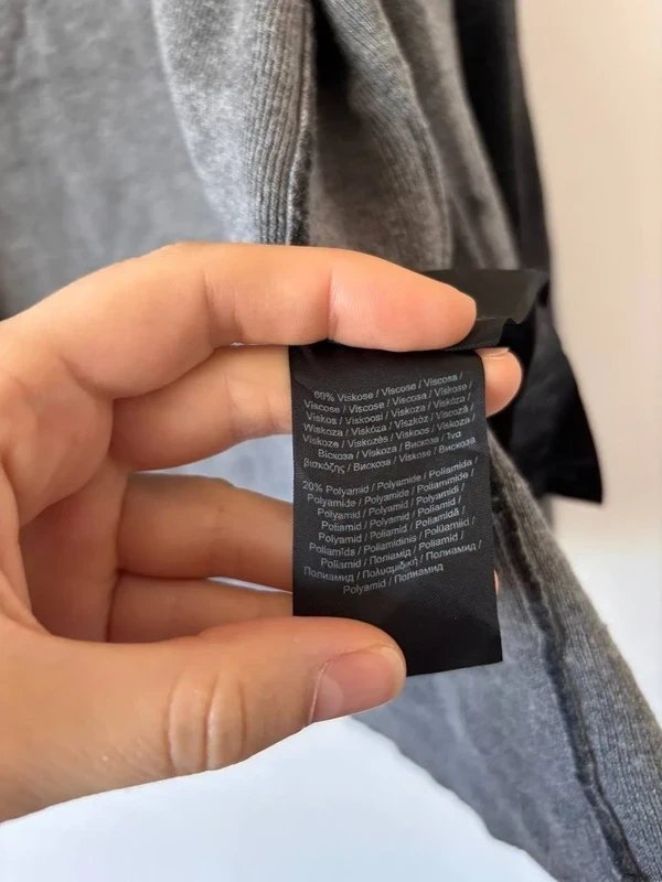Wykonany z przyjemnej w dotyku dzianiny (80% wiskoza, 20% poliamid) — lekki, ale ciepły.