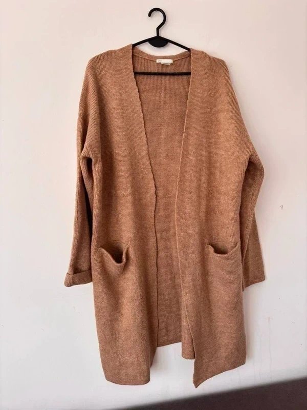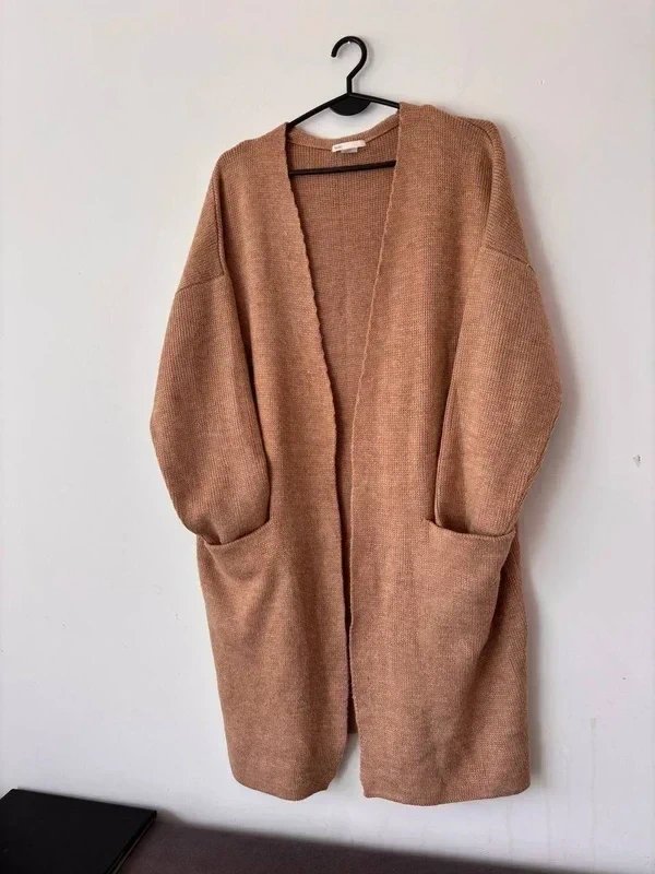 Dłuższy krój, otwarty przód bez zapięcia i duże kieszenie po bokach — idealny do codziennych stylizacji.