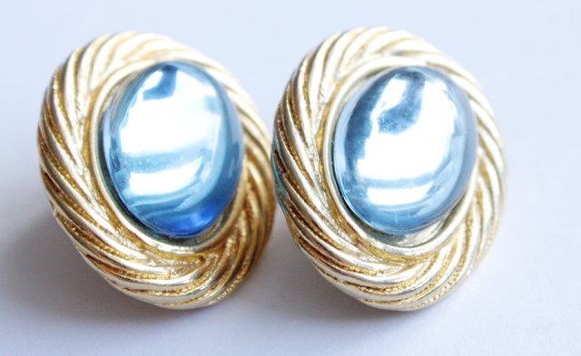 Piekne klipsy w stylu retro w stonowanym odcieniu blekitu.