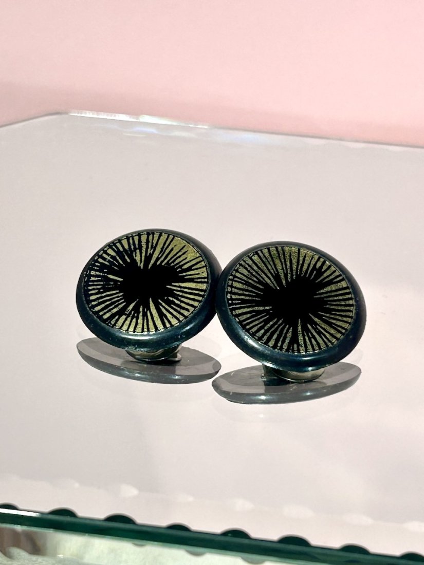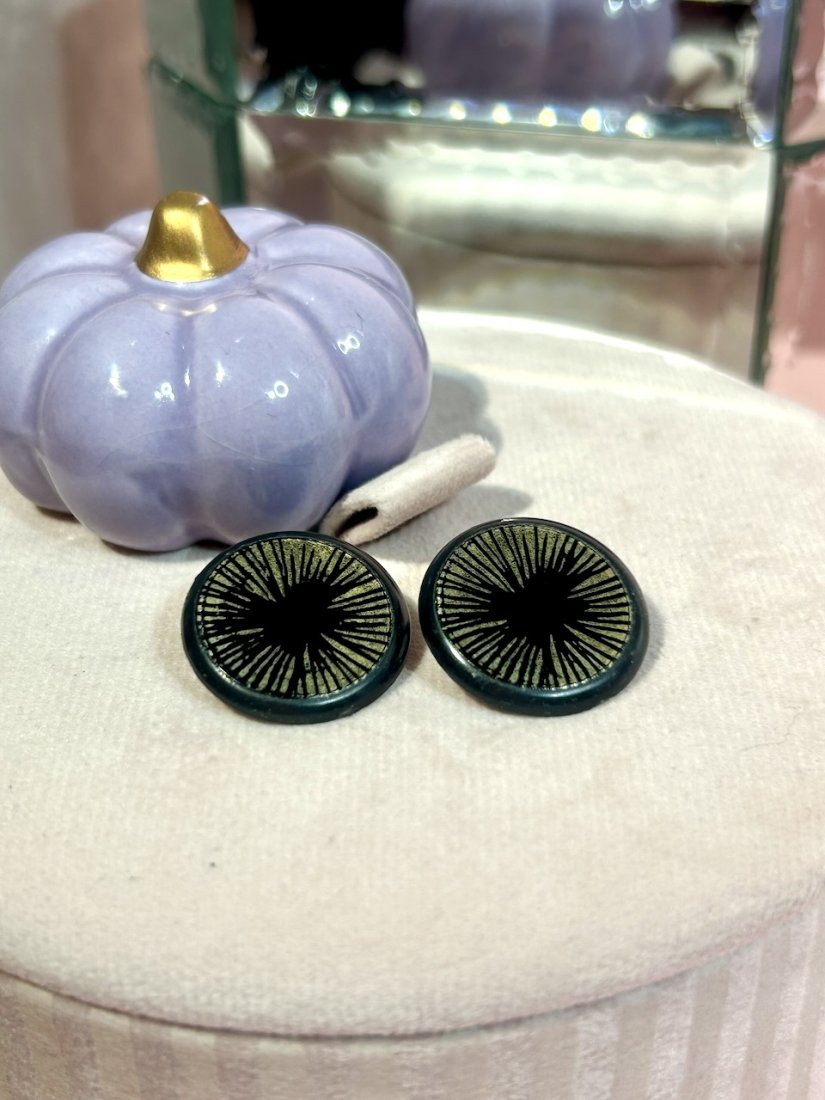 Wykonane z masy plastikowej, w onyksowej czerni ze złoceniem w formie promieni.