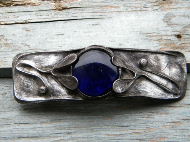 klamra do włosów ze szkła oprawionego w ocynowaną miedz.