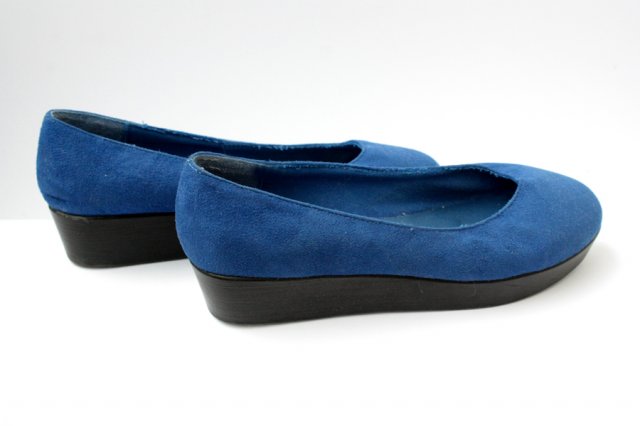 Wygodne, niskie koturny w kolorze kobaltowym marki Jette Riis Copenhagen.