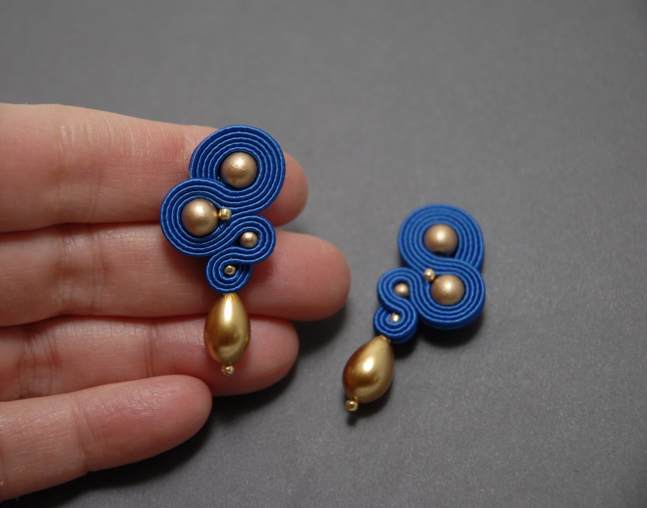 Oferuję kolczyki zrobione haftem sutasz, ozdobione koralikami