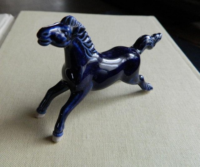 Ceramiczny konik, szkliwiony kobaltem, bez sygnatury.