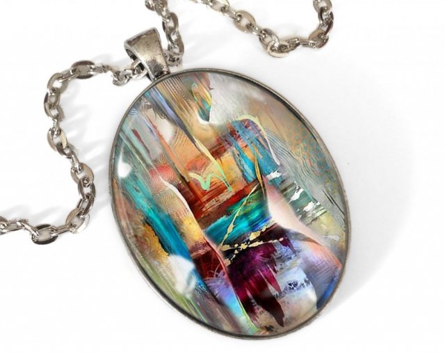 Ręcznie robiony duży owalny medalion z wysokiej jakości grafiką.