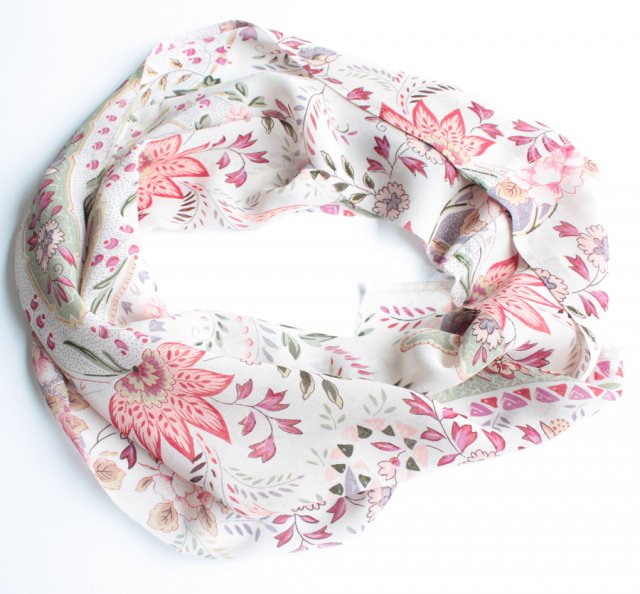 Zwiewny, kwiatowy szal wykonany prawdopodobnie z wiskozy. Będzie wspaniałym,kobiecym dodatkiem uzupełniającym stylizację.