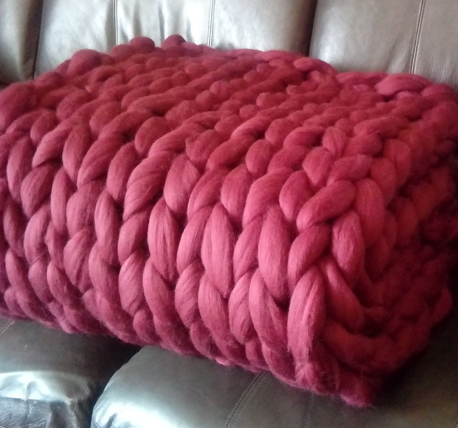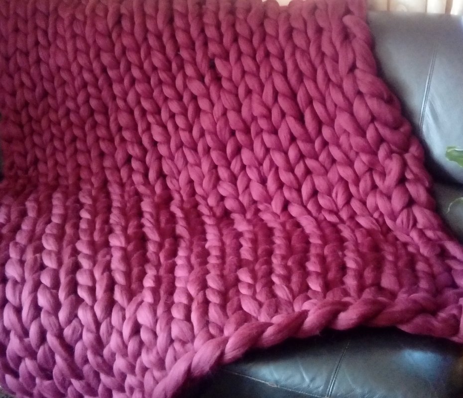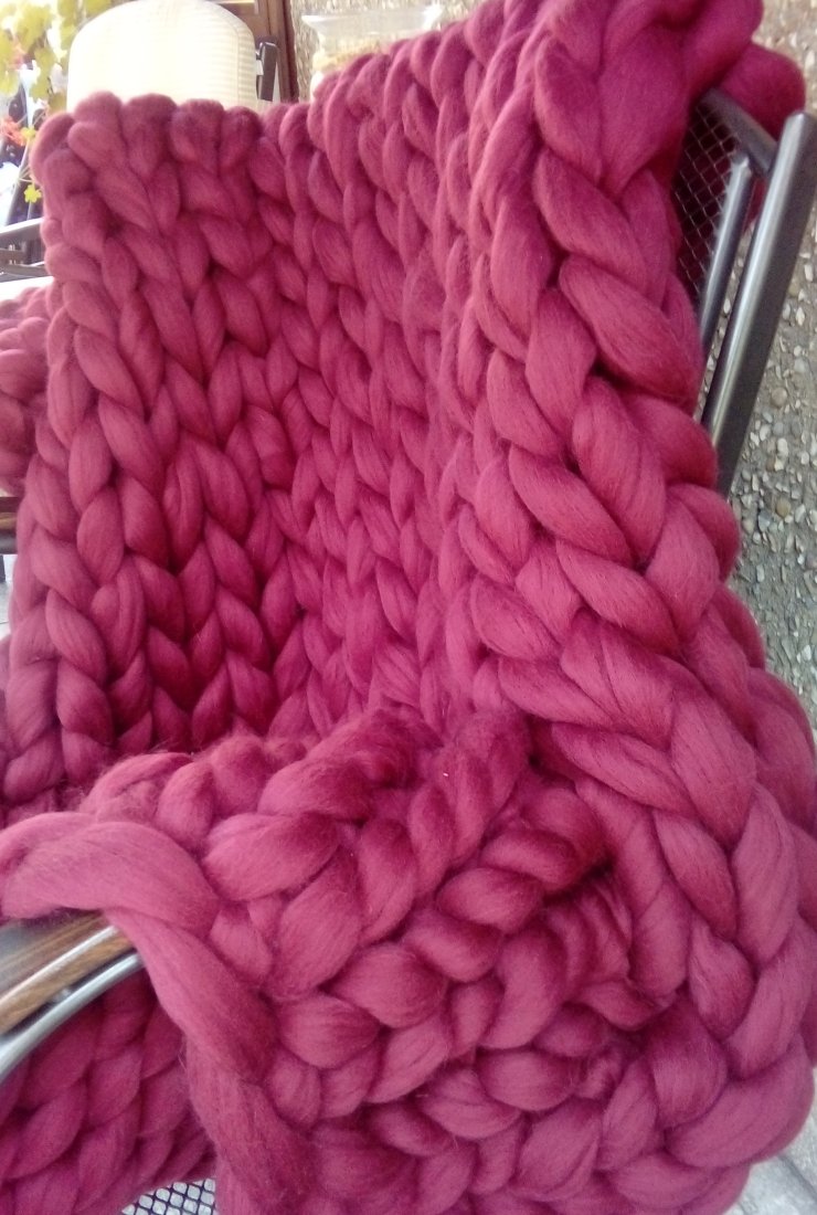 Wymiary: 120 cm x 180 cm. Kolor bordowy. Skład: 100 % wełna owcza z merynosa wyłącznie od polskich producentów.