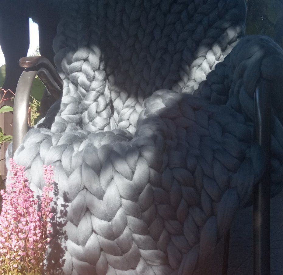 Koc wykonany ręcznie z wysokiej jakości wełny czesankowej z merynosów. Jest niezwykle efektowny, ma piękny połysk i nie tylko ozdobi każde wnętrze, ale także spełni funkcję użytkową w chłodne dni. Jest bardzo delikatny w dotyku a jednocześnie ciepły i przytulny.