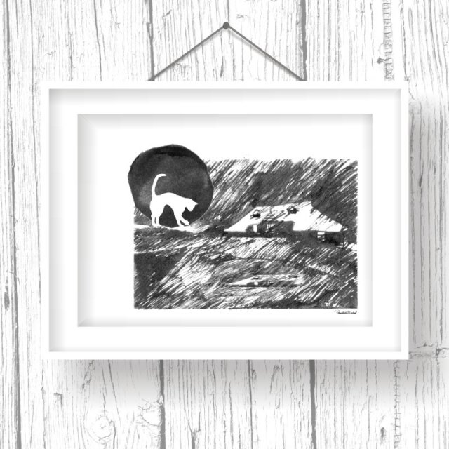 Reprodukcja ilustracji wykonanej piórkiem z dodatkiem akwareli. Wydruk atramentowy na papierze fotograficznym w formacie ok. 20x30 cm. (A4). Ilustracja wymaga oprawy.