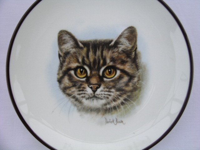 Błyszcząco szkliwiony, jedwabisty w dotyku, szlachetny i solidny zarazem, porcelanowy talerz użytkowy z kocią obecnością :) Sygnatura angielskiej jakości Coalport, numerycznie przez inspektora sprawdzona. Projekt Dericka Browna. Jakość malatury i ciepła, niemal ecru, biel porcelany. 17 x 2 cm. Stan zachowania bardzo dobry. Doskonały na prezent i do kolekcji.
