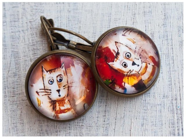 Kolczyki KOCIAKI to bardzo kobiece i malutkie dzieła sztuki, które łączą nowoczesność z odrobiną antycznego powiewu. Obrazki pod szkiełkiem to obraz mojego autorstwa.