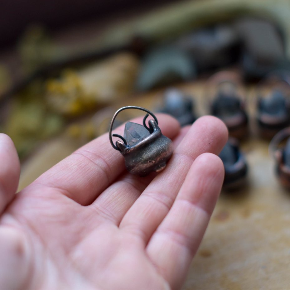 Wewnątrz każdego kociołka znajduje się kryształ górski surowy.