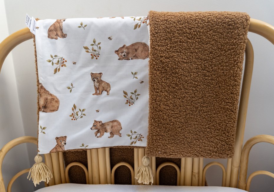Cieplutki kocyk uszyty z bawełny premium oraz puszystego baranka.