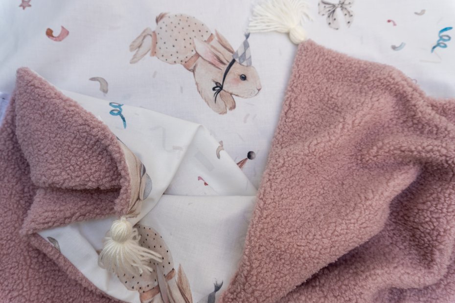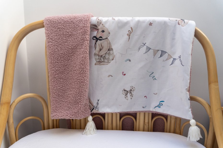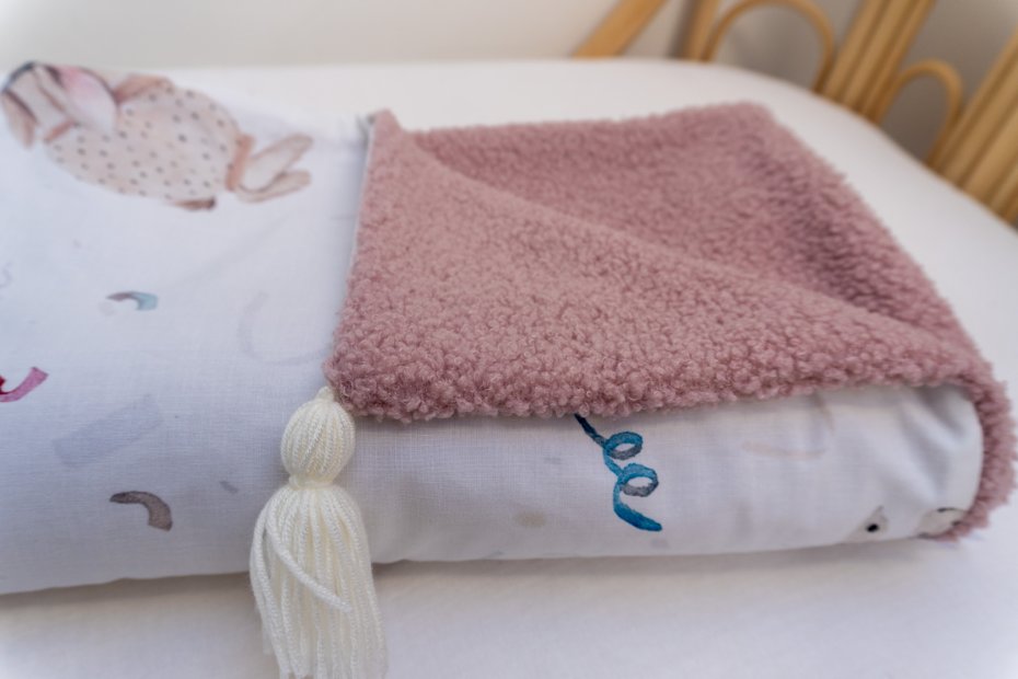 Cieplutki kocyk uszyty z bawełny premium oraz puszystego baranka.