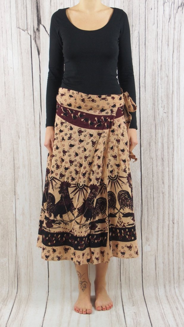 Świetna wiązana spódnica w zabawny wzór w kury i koguty.