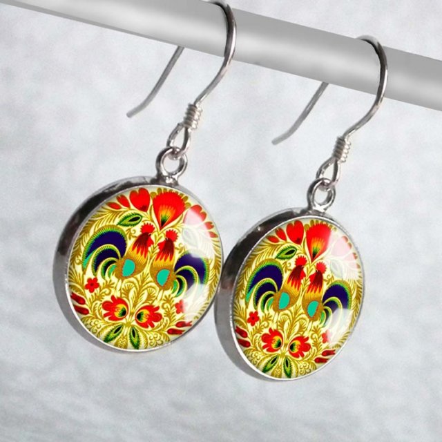 Tagi: #biżuteria z grafiką, #folk, #koguciki, #srebro