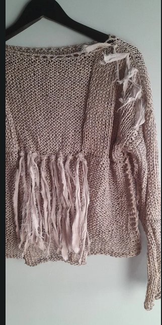 Wykonana na drutach z najwyższej jakości włóczki melanż nitek len wiskoza bawełna wykończenie len unikat autorski długość ok 50 szerokość ok 60