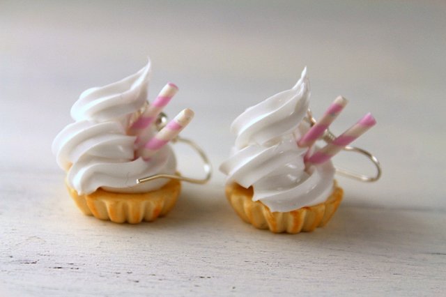 Witaj w moim sklepie. Mam do zaoferowania własnoręcznie wykonane z masy termoutwardzalnej fimo kolczyki słodkie babeczki z różowymi, słodkimi rurkami.