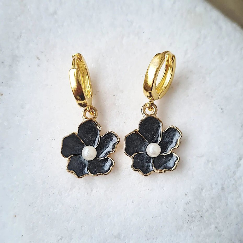 Kolczyki wykonane ręcznie, ze srebra próby 925 pokrytego 24 karatowym złotem oraz jubilerskiej emalii.