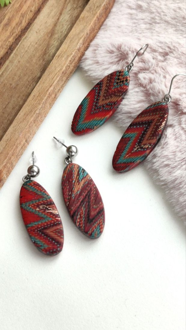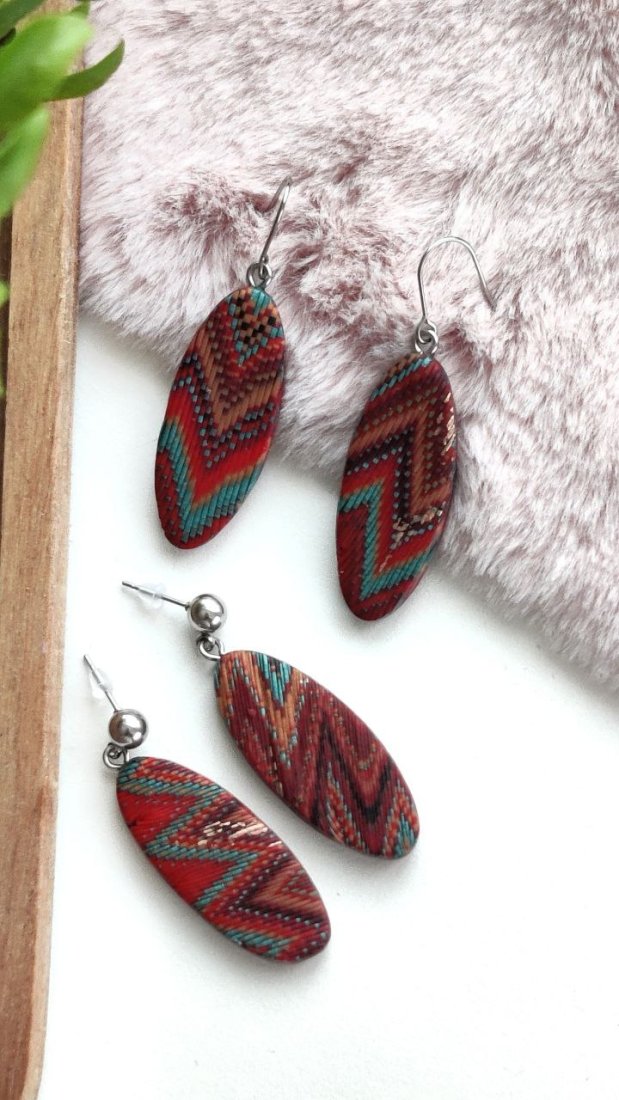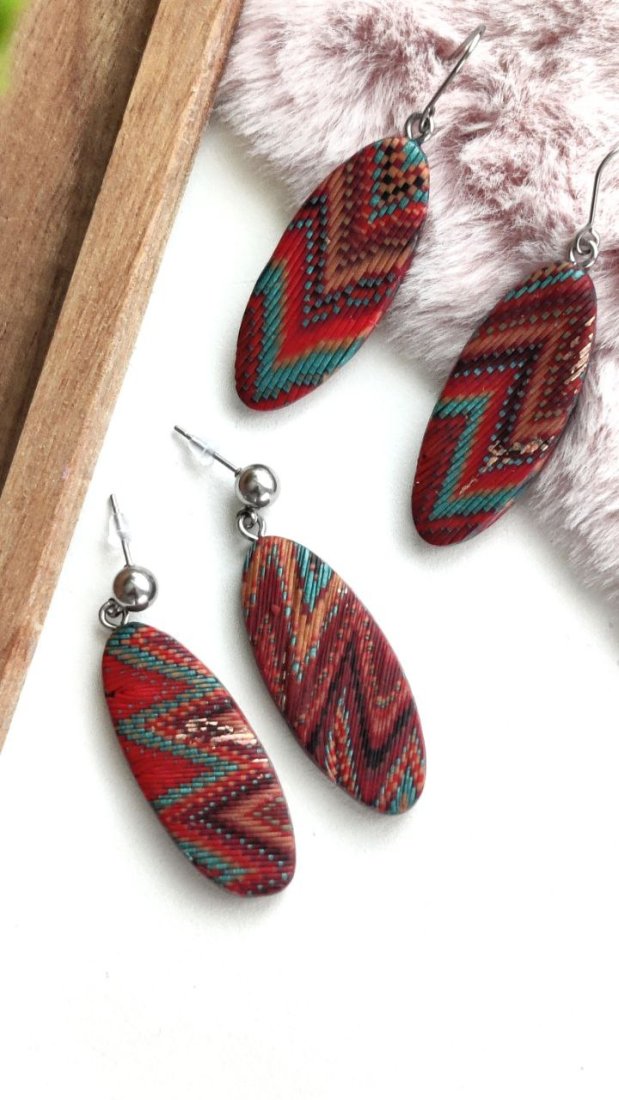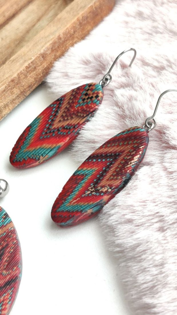 Ręcznie robione kolczyki z lekkiej i trwałej gliny polimerowej, inspirowane stylem etno i boho. Każda para jest wyjątkowa — tworzona z dbałością o najmniejszy detal, z misternymi, wielobarwnymi wzorami, które przyciągają wzrok i dodają charakteru każdej stylizacji.