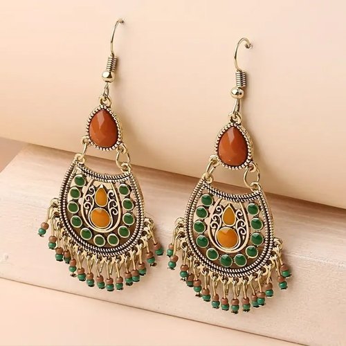 Kolczyki w ciekawej formie - wiszące w kolorystyce brązowo-miodowej , w klimacie arabskim