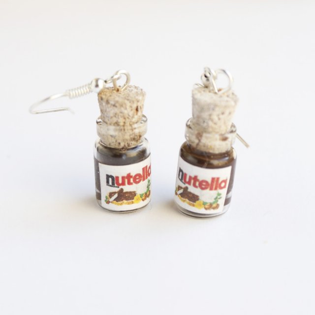 Urocze kolczyki - miniaturowe buteleczki wypełnione pysznym kremem kakaowym. Długość samych buteleczek to około 2 cm, z biglami 4 cm. Bigle posrebrzane. Na zamówienie mogę wymienić na srebrne. Kolczyki są bardzo lekkie. Wysyłam ozdobnie zapakowane.