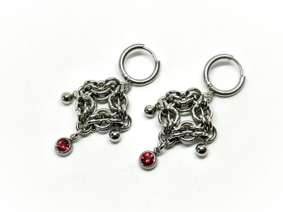 chainmaille, z cyrkoniami, długie wiszące, stal chirurgiczna, gothic, punk, vampire,witchy, dark romance, cyber goth, industrial, alternatywne, hipoalergiczne, wodoodporne, na koncert, festiwalowe, custom, biżuteria kolczugowa, biżuteria mroczna, biżuteria alt, biżuteria gothic, biżuteria z cyrkoniami, biżuteria punk, biżuteria vampire