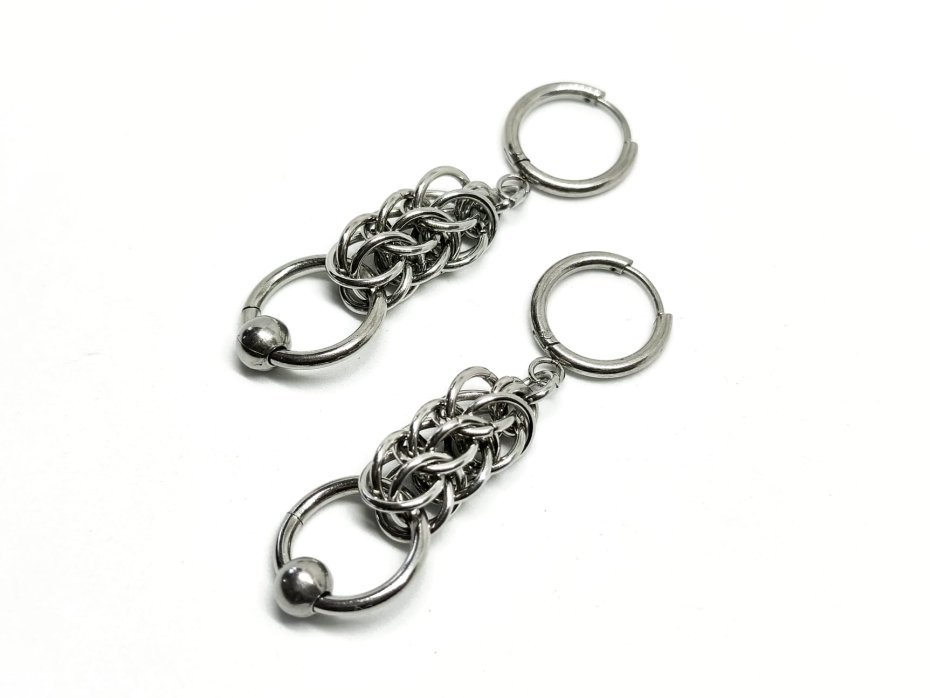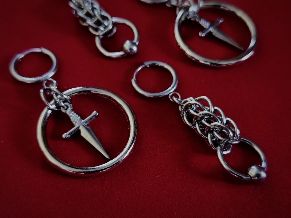 Kolczyki chainmaille, kolczyki z łańcuszkiem, kolczyki długie, kolczyki stal chirurgiczna, kolczyki gothic, kolczyki punk, kolczyki vampire, kolczyki witchy, kolczyki alternatywne, kolczyki hipoalergiczne, kolczyki wiszące długie, kolczyki z sztyletem, kolczyki na koncert, kolczyki festiwalowe, biżuteria kolczugowa