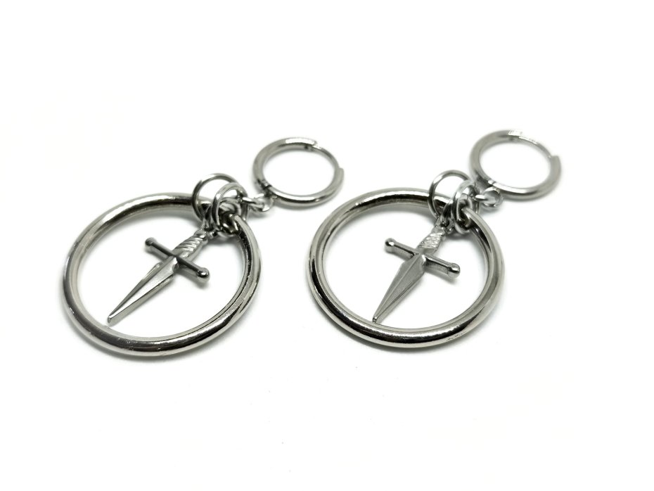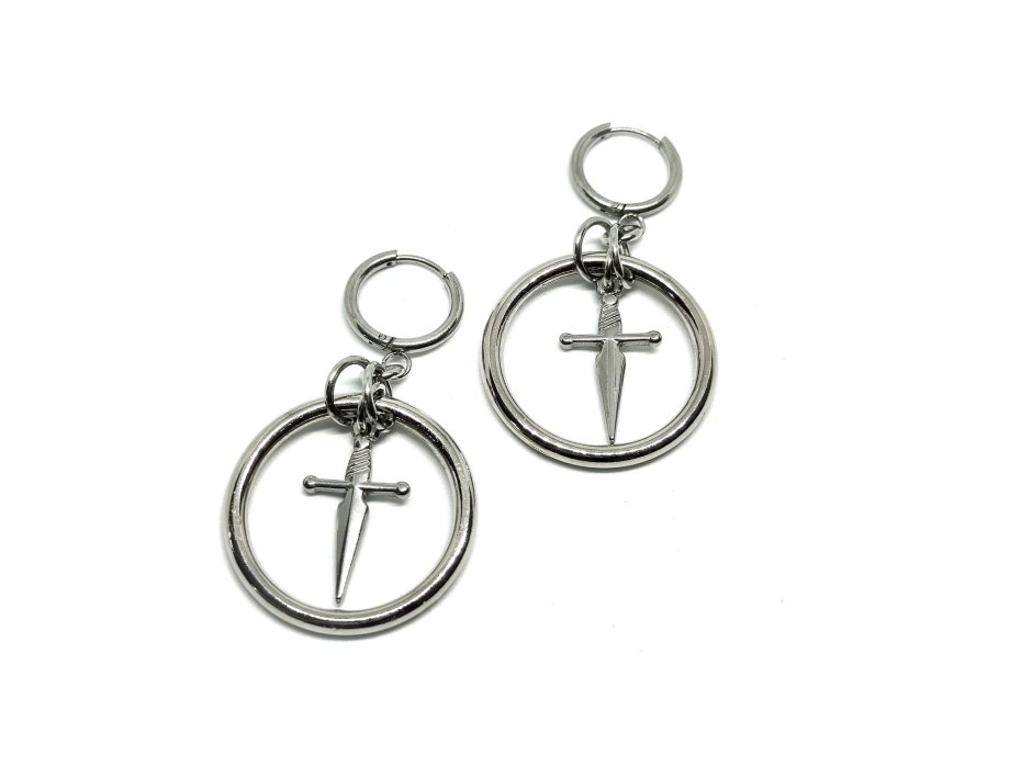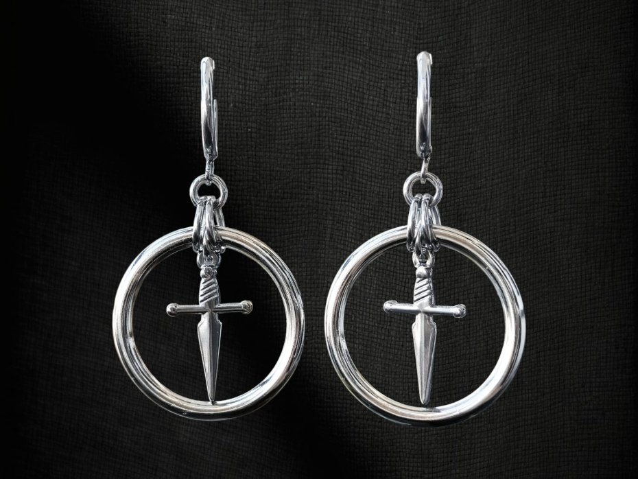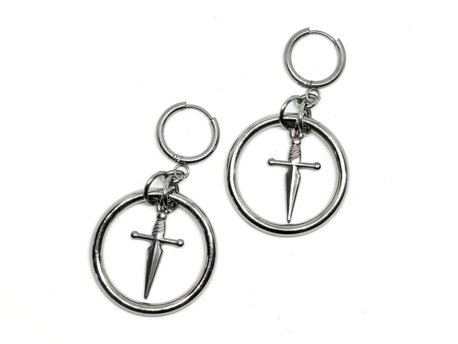 Kolczyki chainmaille, kolczyki ze sztyletem, kolczyki z obręczą, kolczyki stal chirurgiczna, kolczyki gothic, kolczyki punk, kolczyki vampire, kolczyki witchy, kolczyki alternatywne, kolczyki hipoalergiczne, kolczyki metalowe, kolczyki długie wiszące, kolczyki na koncert, kolczyki festiwalowe, biżuteria kolczugowa
