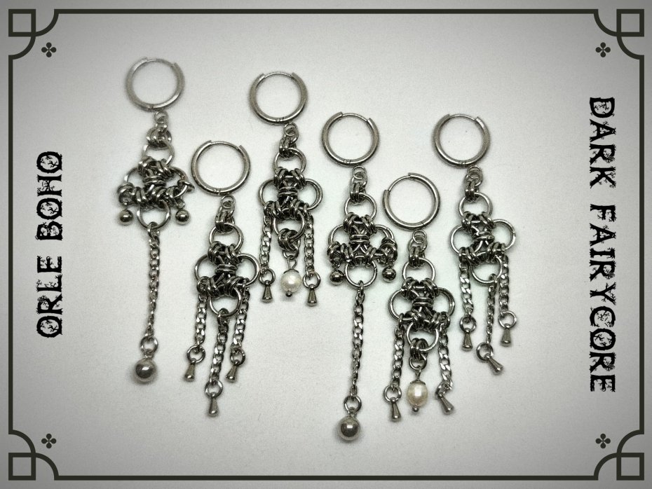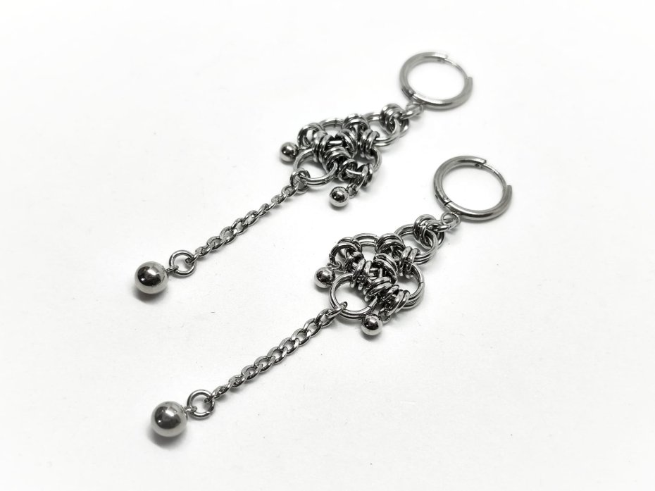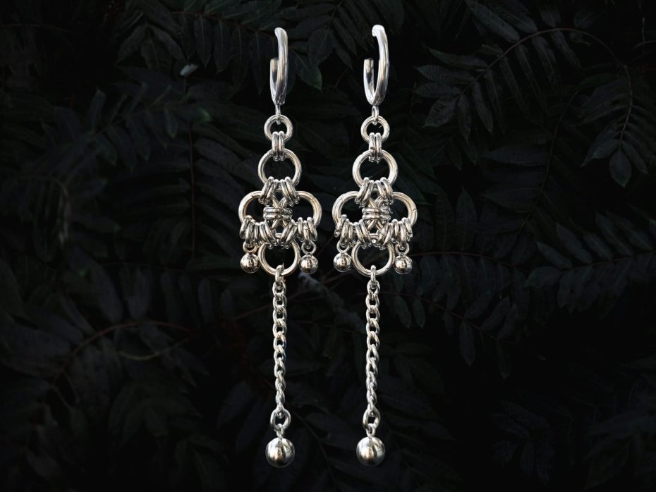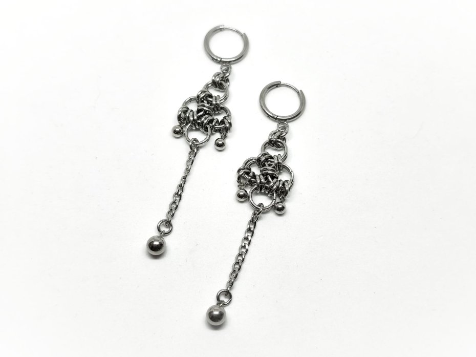 chainmaille, z łańcuszkiem, industrial, punk, cyber goth, długie wiszące, stal chirurgiczna, hipoalergiczne, wodoodporne, na koncert, festiwalowe, biżuteria kolczugowa, biżuteria mroczna, biżuteria alt, biżuteria industrial, biżuteria punk, biżuteria cyber